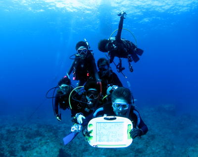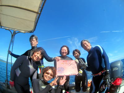潜降してすぐに記念撮影v(^-^)v M子さん、おめでとうございます! これからもご夫婦仲良く楽しく潜り続けてくださいね(^_-) |