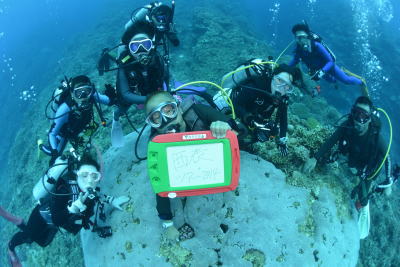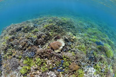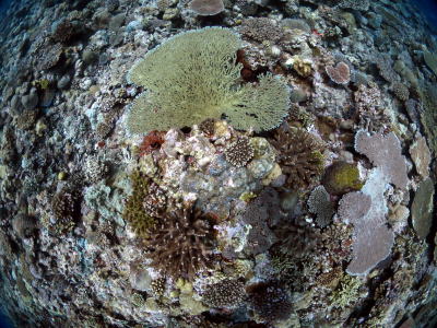 真上からサンゴを撮ると〜 こんな面白いワイド写真も撮れちゃいます♪ |
