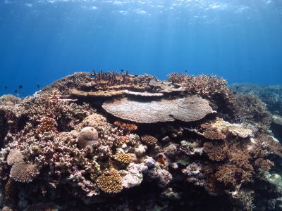 | サンゴにカラフルなお魚の群れが映えますね〜!! | ![]() |