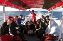 | 7月末の週末は、黒潮接近で透明度も一気に回復&水温アップの串本へ行ってきました〜! まず土曜の1本目は、O久保様の500本記念!住崎でお祝いです(^○^) 400本記念がついこの間のような気がしますが、気づけばもう500本!これからも水中撮影も楽しんで、色々な海へ潜りに行きましょうね〜!! そして、3本目は、O様の200本記念です!OW講習では、もうダメ〜となったり、レスキュー講習でも、もう泳げない〜となったりしながらも、いつも楽しそうに潜っているO様の姿は、スタッフの励みになりますo(^-^)o これからも、楽しい仲間と楽しいダイビング、続けていってくださいね! お二人とも、本当におめでとうございます!!! 海はというと、透明度も随分回復〜♪台風10号のうねりも徐々になくなり、水温もウェットが気持ちいい温度まで上がってきました!どこもお魚の群れが多く、抱卵中や育児中のスズメダイやギンポの姿が見られていますよ!まだまだこれからさらに熱い水中になってきますので、乞うご期待です! OW講習チームも、初日から「ミナミハコフグの赤ちゃん見ました〜♪」「楽しかった〜!」と上がってこられたお二人!きっとダイバーになるべくしてなられたんですよ〜(^-^) 土曜日のアフターダイブは、ニュースでちょっと話題になっているアカエイの群れを見に、古座川の河口まで行ってきました!すると・・・最初は1匹、2匹、遠くで確認できる程度だったんですが、30分後にはどんどん数が増えて集まってきました〜(^O^)すごーい♪大集合してきたアカエイの姿に、一同30分以上水面を眺めて、めったにみれないレアな光景を楽しみました! そして、お腹も空いたので、BBQがスタートです!今回は、頼りになるファイターがいたので、焼き甲斐がいつも以上にありましたよ〜!もちろん記念ダイブのお祝いオムレツも作成o(^-^)o 皆さんお腹いっぱい楽しんでいただけたかな〜? さらにさらに、ログ付けのあとには、記念ダイブのお祝い&スタッフのお誕生日のお祝いもしました〜!甘いものとフルーツは別腹?!ということで、ケーキとフルーツを堪能しました! 翌日もいい天気&ものすごい暑さ〜っ!!はやく海に入りたーい、ってなっちゃいますね(^○^) 早速、ダイビングへ!ボートチームは、吉右衛門で地形ダイブを満喫♪ そして、ラストは、OW講習を終えたお二人も一緒に備前へボートダンダイビング〜♪ダイナミックなダイビングに、OWチームも「やっぱり違いますね」と感動(^-^) エア消費も経験と共に減っていきますから、どんどん潜って上手になっていきましょうo(^-^)o ツアーにご参加いただきました皆様、有難うございました!次回も、宜しくお願いします! ![]() |