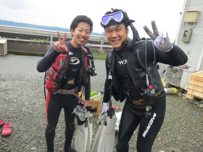 さらにこちらはAOWチームバディ♪ Uくんは、お気に入りのマイ器材の浸水式です(*^_^*) これで今日から快適ダイビングは約束されました〜! |