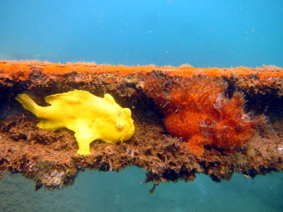 さらにさらに〜 そろそろエキジット〜と思った瞬間に まっ黄色いど派手な体が目に入り 近寄ってみるとカエルアンコウのペアでした〜\(^O^)/ 思わず絶叫の瞬間でした(≧▼≦) 来週は何が見つかるか楽しみですね〜! |