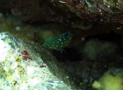 小さくて動き回っているルリホシスズメダイの幼魚を Tちゃんも頑張って撮影してくれました! なんともかわいい姿です(*^_^*) |
