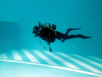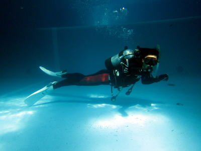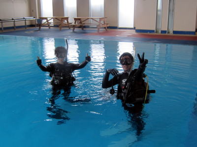 | フィンのけり方が分からないといっていたYくん みっちり練習の成果で、中性浮力も、フィンキックも だんだん上手になってきました(^○^) |