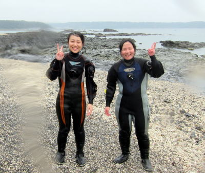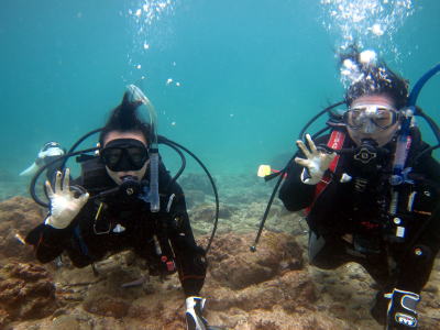 | 一方、日曜にOWコース 初日のお二人(*^_^*) 体験ダイビングも経験済みのお二人は 余裕の表情ですね〜!! |