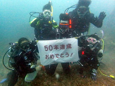 | まずは土曜日の3本目で50本を迎えたSボン♪ ダイバーになって1年未満で50本は 素晴らしいですね〜(*^_^*) |