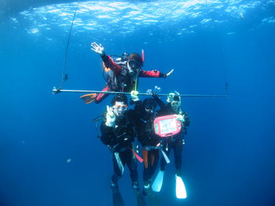 | そして、見事AOWダイバーに認定の皆様 青い海、ドライスーツもだんだん慣れてきましたね(*^_^*) この調子でどんどん潜りにいきましょーっ!! |