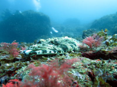 | 思いがけないコースで見つかったツマジロオコゼさん! ユラユラ枯れ葉に擬態中でした! |