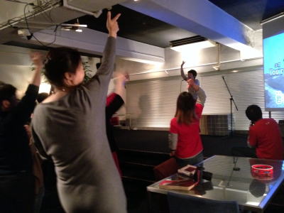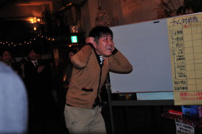 | 休憩を挟んで いよいよチーム対抗クイズの始まりです! まずはジャンケンで順番を決めて〜 恒例のジェスチャーゲームから始まりますっ!! |