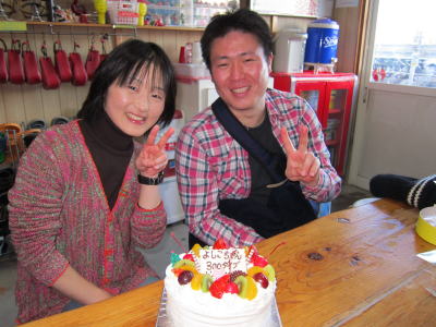 奥様の300本記念には バディとしてご参加いただきました(^○^) これからもご夫婦で仲良く潜りに来てくださいね〜♪ 後には、今だけのクリスマスツリーも写っておりますよ! |
