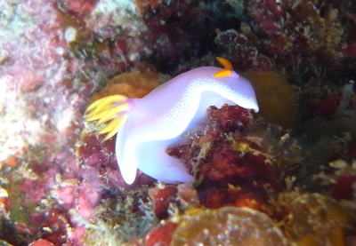 | だんだんウミウシの数も種類も増えてきました! こちらは、カラフルなルージュミノウミウシさんです(*^_^*) |