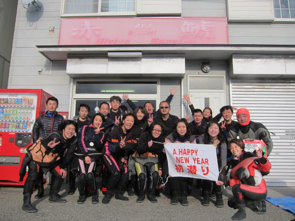 翌朝はまずは初日の出チェック(^-^)今年は残念ながら、雲が多くて、ちょっと高い位置での初日の出となりました。海はというと・・・前日からの風の影響が強く残っており、ボートは×のため、昨年同様に出雲ビーチでの初潜りとなりました!