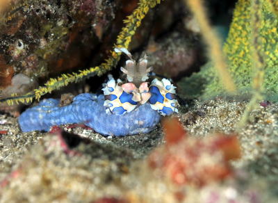 | 青いヒトデを食べてどんどんブルーになっている フリソデさんです(^-^) よーく見ると片方の触覚がちぎれてありませんねぇ。 次回は、 D800デビューでさらに素敵な写真を期待しておりますよ(^_-) |