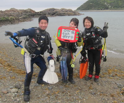 | 無事にOWコース認定となりました! Nっちゃんおめでとう(^○^) 次はきれいで穏やかな海で潜ろうね♪ |