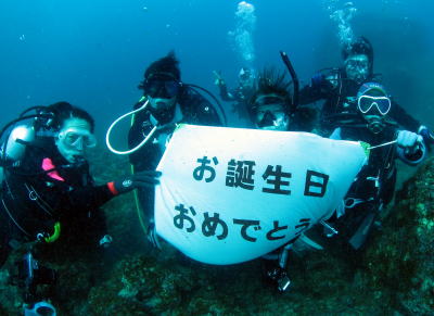 | 4月4日は、Uちゃんのお誕生日♪ さらにダイバーとしてのスタートをきった日でもあるのです! これからもいろんな海を楽しんでいきましょうね(´∀`) |