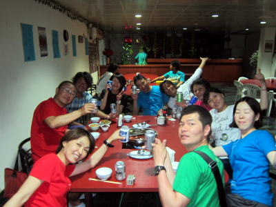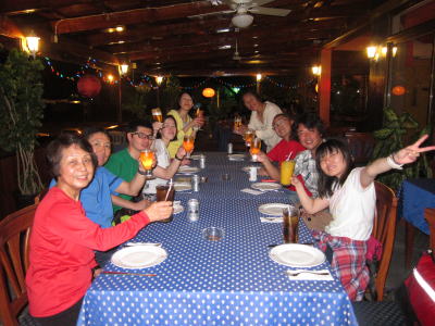 | そして、夜は九州居酒屋さんへ〜!! ある意味パラオならでは感のある場所です! 気がつけば今年はここで最後の打ち上げになりました(^-^) |