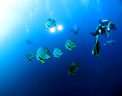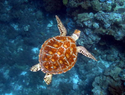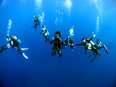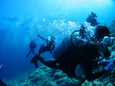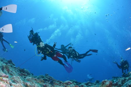 さて翌日〜♪ もちろん快晴でダイビングがスタート! チェックも兼ねてノンビリかめさんの多いポイントです(*^_^*) ラストは安全停止中に、なんとバラクーダの群れが登場! ドラマティックなスタートになりました! |