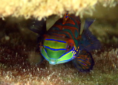 | おまけは、オアシスの桟橋下で 有志のみでニシキテグリを観察してきました(^-^) 夕暮れが近づくと、どんどん岩の隙間からでてきてくれました! |