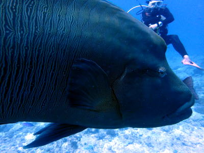 | ブルーコーナーと言えばナポレオン(*^_^*) カメラ目線でダイバーの真横を通り過ぎていきます! |
