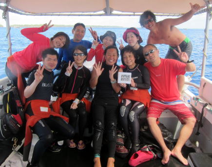 | 毎年4月の恒例ツアー ダイバーの憧れの地 パラオへ今年も行ってきました! お天気はもちろん快晴♪ 海も穏やかで、GOOD コンディションの中、3日間で全11ダイブを楽しんできましたよ! 到着日は、フライトの関係でいつもよりもパラオ到着が遅くなりましたが、 22時から特別に美登寿司さんを開けていただいて、 初日の宴会となり、美味しいワインに梅酒にたっぷり飲んで楽しみました! 無理をきいていただいた美登寿司の皆様、オアシスの皆様、有難うございました(*^_^*) さて、翌朝はもちろん晴れっ!暑いっ!夏っ! 早速準備していざ海へ(*^_^*) 1本目はチェックダイブも兼ねて、デクスターウォールへ! ここはウミガメさんの多いポイントということで、潜って早速、タイマイさんや、アオウミガメさんが、 あちこちで泳いでいたり、ご飯を食べていたりお昼ねしていたり〜(^-^) 日本では見ることができないホソフエダイの群れもいました! 2本目は、早速ブルーコーナー 上げサイドからエントリー! まずはトラフザメさんを発見! ドロップ沿いを流していくと、だんだんコーナーが近づき、 マダラタルミの大群に、ギンガメアジの大群が見えてきました! 初パラオの皆様や久々パラオのゲスト様、大興奮であっという間にコーナーの棚の上へ! そのままそこでフッキングとなりました! ちょうど強い潮があたる場所だったので、マスクにも、顔にも、ガンガンに流れがあたって気持ちいい〜♪ 初カレントフックのゲスト様も最初は激流にかたまってましたが、フッキングしてからは 目の前を過ぎ行くサメを楽しくウォッチングできました! 3本目&4本目はジャーマンチャネル! マンタにも会いたかったのですが、残念ながらこの日は姿を現さずでした。 でも、マンタなんかいらないくらいの大興奮のダイビングでしたよ(^○^) まずは今まで見たことないくらい巨大なサイズ&怖い顔をしたイソマグロさん!!! グレイリーフシャークにホワイトチップにナポレオンにギンガメアジの大群に〜♪ そして、水面を埋め尽くすグルクンの大群・大群・大群\(^O^)/ 上空が真っ暗になるくらいの群れでした!! ![]() この日の夕食は、パラオツアーで初挑戦のThe タージ、というインド料理屋さんへ! ここは水中写真家の鍵井さんのお気に入りだそうで、 撮影でパラオへ来られていた鍵井さんもご一緒していただいちゃいました〜! ゲストの皆様も、なかなかこういう機会はないので、大喜び(*^_^*) もちろんタージのカレーにタンドリーチキンに各種ナンも美味しくて お腹いっぱい&美味しいお酒もたっぷりいただいちゃいました! さて、翌朝は5時起きで早朝ダイビングでカンムリブダイの産卵を狙うことに! ポイントについて、少し流れ具合と群れ具合を見てからエントリー!産卵場所へと移動していくと だんだん集まってくるカンムリブダイ達の姿が見えてきます。 そして、気がつけば目の前にはとんでもない数のカンムリブダイの群れが集まっています! 最初はただ群れて泳いでいたカンムリブダイが、しばらくすると、大産卵ショーを開始しました! 数匹が集まって、物すごいスピードで水面に駆け上がりながら放精放卵をしていきます! その光景は本当に大迫力\(^O^)/ しばし見入ってしまいました〜!!! ![]() 大興奮のグラスランドから、お次は王道 ブルーコーナーへ! 下げサイドからエントリーして、流れは緩い感じでのんびりコーナーです(^-^) お魚達ものんびりしていて、ギンガメアジの大群も棚の上でのんびりと群れています! 上空にはバラクーダも群れていてのんびりと大物三昧できました! この日の3本目はブルーホール!太陽の光も差し込んでキレイな時間帯です! 横穴から入っていくと、上空にあいた穴からはなんともきれいな光が差し込んでいます! そして、穴の中から外海を振り返ると、そこにも青い青い海が広がって、最高に癒し系の景色でした(*^_^*) 穴からでて、壁沿いを少し泳いで浮上しようとしたときに、ダウンカレントに巻き込まれそうになりましたが、 冷静なゲストの皆様はちゃんと上手に対応して浮上できました! こういうのもなかなか経験できることではないので、新しい、いい経験ができましたね〜♪ ![]() 3本が終わった段階でも、まだ11時前〜っ!まだまだ潜れちゃうっ! お昼ごはんを食べて、しばしシュノーケリングタイム♪ DM講習中のZッツのスノーケリング&スキンダイビングの特訓もスタートし、 最後は皆で笑いと感動のスキンダイビングタイムになりましたよ〜(^○^) 休憩が終わったら、再び王道のブルーコーナーへ! 今回も流れがそれほどなく、のんびりコーナーです(*^_^*) 人懐っこいナポレオンちゃんとも一緒に皆で記念撮影♪ 棚の上ではバラクーダの大群に、オオメカマスの大群、ホワイトチップものんびり休憩中です(^-^) 楽しくのんびりコーナーを満喫しました! だがしかーし、4本終わった段階でも、まだ14時前! まだ潜れるやんっということで、RED ORCAパラオツアー史上初の1日5ダイブいっちゃいました〜! 5本目はのんびり