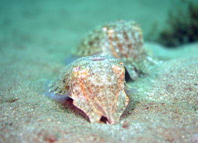 砂地でラブラブな姿が見られたコウイカのペア♪ そーっと近寄ると 全然逃げなかったですよ! |
