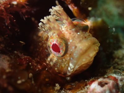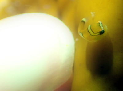 | あちこちでコケギンポも見かけましたが、 こっちで見るコケギンポはサイズがでかい気がします! TG-3の顕微鏡モードなら 目玉のクリスタル感もバッチリですね(^_-) |