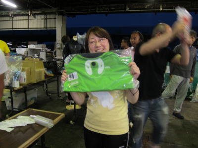 | 大抽選会では、くじ引きで賞品があたりますが 毎年参加のSりん 今年も素敵なウォータープルーフバッグをGETです! |