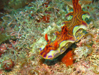 | まだまだウミウシもいっぱいいますよ! こちらは赤系のミアミラウミウシさん(^○^) |
