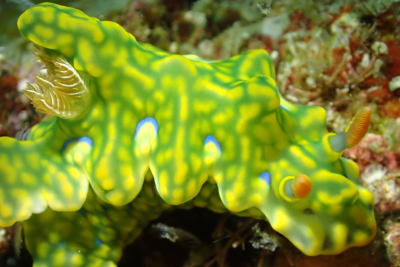 こちらは緑系の同じくミアミラウミウシさんです! この芸術的な配色がなんともいえませんね(^_-) |