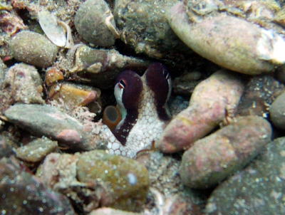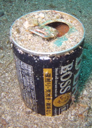 この空き缶の中 オレンジ色のツブツブが写ってるんですねぇ。 これはニジギンポちゃんの卵なんです(^○^) 一生懸命、卵を守っている姿がけなげで可愛かったですね! |