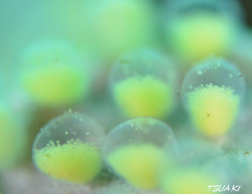 水中では、あちこちで可愛い赤ちゃんに 卵なども見られていますが、 これは何の卵か分かるかな〜??? 実は・・・ 皆さんご存知のウミウサギ貝の卵なんですよ! なかにさらに小さなツブツブがたくさん入ってるのが見えていますね(*^_^*) 今年の秋にはたっくさんのウミウサギの子供が見れるかも〜♪ |