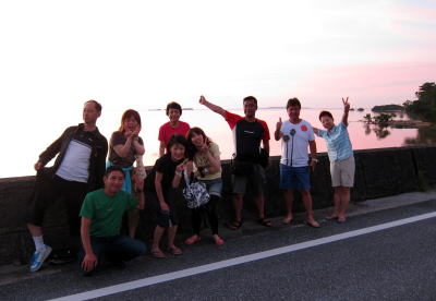 オガンを満喫した皆さん 夕焼けをバックに最高の笑顔でーす\(^O^)/ |