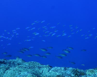 | ウメイロモドキの青と黄色が真っ青な海に映えていますね! ツムブリの大群もやってきましたよ〜(´∀`) |