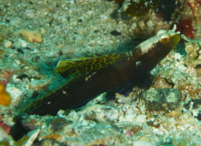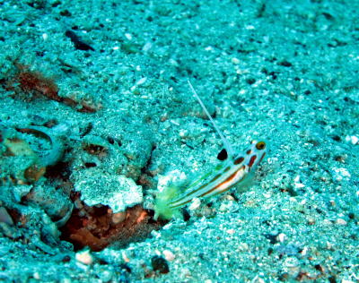 こちらはホタテツノハゼさんですが こちらも全然物怖じしませんっ! 大接近で頭のてっぺんの白いのがよく分かりますね! |