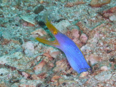 | ハナヒゲウツボも元気にガオーっと吠えていましたよ! でも、なんとなくサイズは幼魚と同じくらいに見えました(^-^) 小柄な子なのかな? |