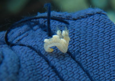 | こちらは講習中にクネクネ泳いでいるところを発見しました ユビウミウシ系のウミウシの赤ちゃん〜♪ お魚だけでなくウミウシもベビーラッシュなのかな〜? |