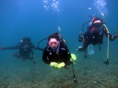 | そして、仲良く上手に中性浮力〜♪ S ダイバーズ誕生ですね(*^_^*) また皆さんで潜りに来てくださいね! |