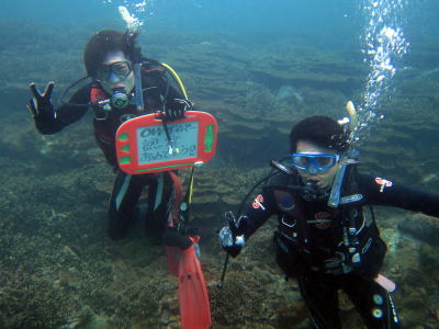 | 海況:土曜ベタ凪 日曜波あり 水温:26~28℃ 透明度:10~15m | |