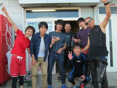 | 海況:土曜ベタ凪 日曜うねり少し 水温:26~27℃ 透明度:15~20m | |