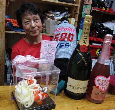 ![]() ![]() 土曜の夜は皆で前夜祭〜\(^O^)/ ゲストのKさん&Nさんからのシャンパンに、O様からは超大作のプレゼント♪ さぁ、2000本に向けて、再びしゅっぱーつ♪ |