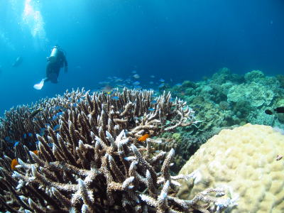 | エントリーするとそこにはサンゴいっぱい! そして可愛いお魚もいっぱいの癒しの光景〜(´∀`) |