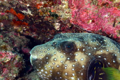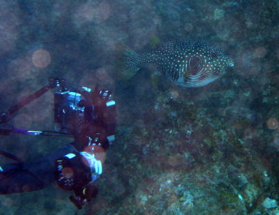 | 実はこーんなにでっかいサザナミフグちゃん でっかくなりすぎて もう魚として泳ぐことができましぇーん(>_<) ポヨンポヨンしながら必死に逃げていく姿 いや逃げられてない姿がなんとも可愛くて(*^_^*) また会えるといいな♪ |