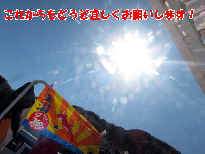 陸も海もたっぷり楽しんだ20周年記念柏島ツアー! 大漁旗ならぬ 「楽潜旗」をこれからもはためかせてまいります! どうぞ皆様これからも宜しくお願いいたします! |
