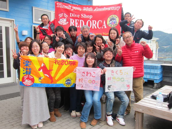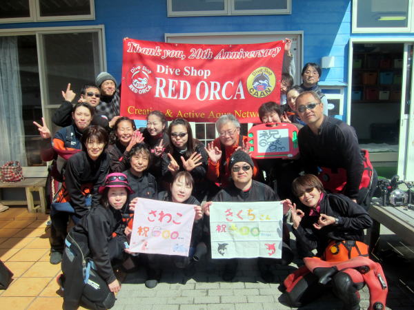 | 毎年恒例の記念ツアー、調べてみましたら2000年の4周年からスタートしておりました! そして、今年はなんと20周年です!! もちろん車はバスで皆でワイワイ~♪到着後も飲み会に突入\(^O^)/ そして、翌日は快晴の中、お楽しみのダイビングへ~!! まずは後浜3番で肩慣らし(^-^) お馴染みのクダゴンベさんにご挨拶したり、 ![]() カンナツノザヤウミウシさんや、 リュウキュウカスミミノウミウシ・ベニゴマリュウグウウミウシなど珍ウミウシもいましたよ! ![]() 肩慣らしを終えて2本目は、K池さん900本&Sちゃん600本の記念ダイブ♪ 陸上でも水中でも記念撮影となりました! ![]() いつも遥々関東からお越しのK池さん そして、本当にいつも楽しそうに潜っているSちゃん お二人とも、本当におめでとうございます\(^O^)/ これからも楽しく潜り続けてくださいね! 水中はカエルアンコウ祭りで 可愛いサイズのオレンジのイロカエルアンコウさんに ![]() イエローのイロカエルアンコウ ![]() そして、紅白のめでたいクマドリカエルアンコウ、と ![]() まさにお祭り状態でした~\(^O^)/ そして、深場でのダイビングから戻る途中に でましたっ! なんとマンボウです!!! あっという間に逃げてしまったので目撃できたのは少数でしたが 奇跡的な出会いでしたね~(^○^) これからもたくさんの奇跡的な出会いを求めていきましょう!! さらにお昼をはさんで3本目は、当店の20周年のお祝いを水中で何かしたい!という ゲスト様のリクエストもあり、 ゲストの方とも何がいいかな~と考えに考えて、 参加者の皆様からお一人ずつメッセージをいただくことにしました! 水中記念撮影のあと、お一人ずつからメッセージをお渡しいただきまして、 ![]() オーナー感動の涙を水中で流しておりました(^-^) 本当に皆様、いつもいつも有難うございます! 「感謝の言葉しか見当たりません」 ![]() これからもどうぞ宜しくお願いいたします! お祝いも無事に終わり、ファンダイブへ~! オーナーの大好きなゴールデンイールモレイちゃんはさすがにまだこの季節でていませんでしたが、 オオモンカエルアンコウがどこからともなく漂ってきたり キビナゴもこのポイントはいっぱいで、のんびりした記念ダイブになりました! ダイビング後は、希望者で近くのお風呂へ! 帰り道では、展望台にも立ち寄って夕焼け空と記念撮影(*^_^*) そして、美味しい夕食タイムとなりました! ![]() 夕食のあとは、記念ダイブのお祝いに20周年のお祝いと、お祝いタイム~♪ ゲストの皆様からいただいたシャンパンで再びカンパイ~! ![]() おめでとうございまーす!!! ![]() ![]() 翌日は少し曇り空ではありましたが、海はさらに穏やかになりました~! さぁ、まずはピグミーシーホースに会いに行きました! 各チームごとに順番に見に行きました! なんと今回は3匹が仲良く並んでいてくれましたよ(^-^) ラストダイブは、再びカエルアンコウ祭りへ! 前日もお会いした可愛い子達に会いに行ってきましたよ(*^_^*) 深いところでは、撮影しやすいイナズマヒカリイシモチさんもカラマツやガンガゼの中で漂っていました(^-^) ![]() あっという間の5ダイブ、たっぷり満喫した2日間でした! 帰りは、美味しい芋ケンピに卵焼きにかつおのタタキとグルメもがっつりおさえて 恒例のバスでのお魚ビンゴ大会も開催!! 今年も盛り上がりましたよ~\(^O^)/ ![]() ![]() ご参加いただきました皆様、有難うございました!! これからもさらに「楽しい」快適な「潜水」を目指して頑張っていきますので 21年目のレッドオルカをどうぞ宜しくお願いいたします(^-^) |