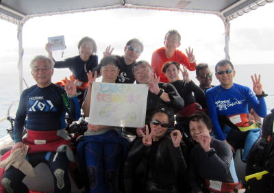 水中は程よい程度の流れで 記念撮影も楽勝でしたね(^○^) 300本で、巨大イソマグロにサメ三昧と 最高の1ダイブになりましたね〜!! |