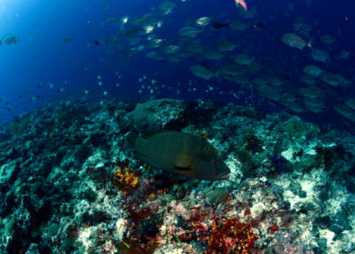 この日ラストのウーロンチャネル! 上げ潮を狙ってのエントリーです(^○^) チャネルの入り口付近で一瞬マダラトビエイがはばたき〜 その場で待っていると、 なんと頭上にまさかのマンタが登場! これには一同驚き&大興奮でした(´∀`) |