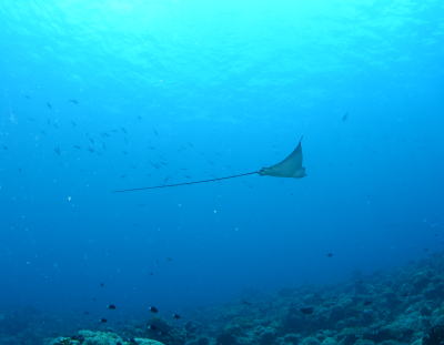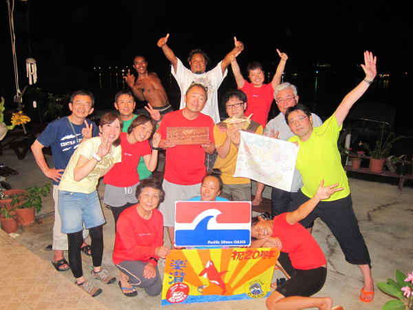 | 毎年恒例の4月開催 パラオツアーへ行ってきました~!! 今年もやっぱり恐るべし海が待っていましたよ~(*^_^*) 出発前は、干ばつによる水不足で完全断水の危機とまでいう話で どうなることかと思いましたが、ちゃんとお天気の神様が雨を適度に降らしてくれて 滞在中、それほど大きな支障はなく過ごすことができました。 到着日は、フライトの遅れもなく、予定よりも早めにパラオに到着! ホテルに着くとすでにオアシスのみやさん&たむちゃんがお迎えに来てくれていました! 早速、恒例の美登寿司さんへLet’s Go!! 今年は残念ながらおかみさんが不在でしたが、 美味しいお寿司やお酒をいただいて、まずは楽しい宴会第一弾でした! さて、翌日からダイビングスタートです! 1ダイブ目は、チェックダイブも兼ねて、流れの少ないゲメリスウォールへ! ここはウミガメさんがよくいるポイントで、今回も全部で3~4匹くらいのウミガメさんに出会いました! ![]() 2ダイブ目は、いよいよブルーコーナーへエントリーです! 程よい流れの中をコーナー手前まで移動して、 しばしドロップオフ沿いを群れるインドオキアジの大群やグレイリーフシャーク、ネムリブカなどを観察! そして、この素敵なダイビングでなんとTさんが、300本記念を迎えられました~! 初のパラオで群れ群れの海で300本!素敵な記念になりましたね(*^_^*) これからも楽しく潜り続けてくださいね! ![]() ブルーコーナーが楽しかったので、引き続きブルーコーナーへ! インドオキアジの群れの下からは沸きあがるようにクロヒラアジの大群がっ! ![]() その後もナポレオンやバラクーダが登場~\(^O^)/ 途中、巨大なイソマグロも登場してくれました! ![]() この日の4本目 上げ潮でマンタ狙いのジャーマンチャネルにエントリーです! 2箇所のクリーニングステーションへ行ってマンタ待ちしますが なかなか登場してくれないので、こうなったら沖出しでマンタ狙いです!! たむちゃんの賭け 大当たりでした~(*^_^*) この後、まずは2枚のマンタが中層で登場~!!! 「おわーっ」と思っていたら 次にやってきた時には3枚に!!!!! さらにさらに最後には4枚で登場です\(^O^)/ ![]() まさにマンタの乱舞に、もうメンバーの興奮はMAXレベル~♪ めちゃくちゃ目の前やダイバーの間を縦横無尽に泳ぎまわる捕食中のマンタ乱舞との遭遇は これまでのパラオツアーのマンタ史上でも3本の指に入る大ラッキーでした! 最後は水面へ浮上後にふと水中を見たらまたまたマンタっ! もう本当にあがりたくなかった~(≧▼≦) 大満足の初日のダイビングを終えて、この日の夕食は、皆大好きなジャイブレストランへ! ここでは、Tさんの300本記念のお祝いも開催いたしました♪ ![]() 翌朝は前日よりも少し早めのスタート! ウーロン方面を目指します! すると・・・移動中に、イルカの群れに遭遇~(^-^) しばらくボートと併走してくれました♪ そして、1本目はシアストンネルへ! ここはマクロも狙ってエントリー(*^_^*) 何匹かでていたアケボノハゼですが、ちょっとシャイな感じでしたね~ わりと引っ込みやすかったのですが、なんとかSさんが激写に成功してくださいました! ![]() 2本目は大物狙いのシアスコーナー! 流れはゆるーい感じです。 コーナーの辺りに到着して振り向くと・・・ マダラトビエイの赤ちゃんが~っ!! マダラトビエイは、パラオでは神様、とも言われているシンボル! これはいいことありそうな気がします(*^_^*) ![]() グレイリーフシャークやオオメカマスの大群を観察して、 その後ゆっくり移動、マダラタルミの大群もいました! さて、この日の4本目は、上げ潮狙いのウーロンチャネル! 流れが気になりますが… 入ってまずはチャネルの入り口付近へ移動すると たむちゃんがエイのサイン。なんとなくひらひらするヒレだけが見えたので、 マンタ???と思っていたら、それはマダラトビエイだったみたいなんですが その後、本当にマンタが登場してくれました~!!!!! ウーロンチャネルでマンタ、なんてなかなかありえない奇跡です(≧▼≦) これはパラオの神様からのプレゼントかな~っ?! ![]() あまりに突然の予想外の出現に一同 驚きと大興奮に包まれました(´∀`) そして、そこからのチャネルドリフト~!! いい感じの流れが入ってきてくれました\(^O^)/ フィンキックしなくてもラクラク流れていきます♪キャベツコーラルも近く感じられました(^-^) あまりに気持ちのいいドリフトに、初体験のゲストの皆様は浮上後もウハウハになってました(笑) 2日目も完璧な流れの中、夕食はインド料理 タージへ! 昨年始めていったのですが、ここのバターチキンカレーに、焼きたてのナン、最高です(*^_^*) ちょっと頼みすぎちゃったくらい美味しくて食べすぎた夜でした(^-^) ![]() さて、翌朝は早朝からブルーコーナーへ向かいます! すると、コーナーが近づいた頃に、前日に引き続きハシナガイルカの大群の登場です! すぐに船を方向転換して、イルカの群れへ~\(^O^)/ 今日のイルカさんはなかなか好奇心旺盛で、船の周りをビュンビュン飛