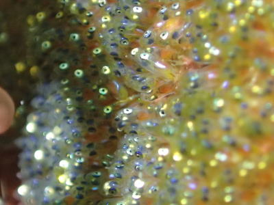 ショウガセやミサチでは、各所にクマノミの卵・卵・卵〜っ! この写真の卵なんて、 今にも赤ちゃんが飛び出してきそうですっ(^-^) |