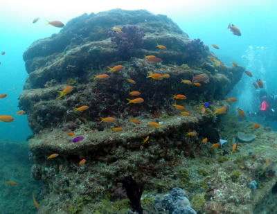 どのポイントも本当にお魚がいっぱいで キンギョハナダイもてんこ盛り〜(´∀`) 色合いがキレイでいつまでも見ていたい光景です! |