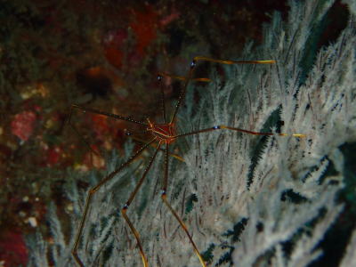 | こちらはポーズを決めたオルトマンワラエビさん! クモのような体型ですが 立派なエビさんで はさみも持ってるんですよ〜(^○^) |